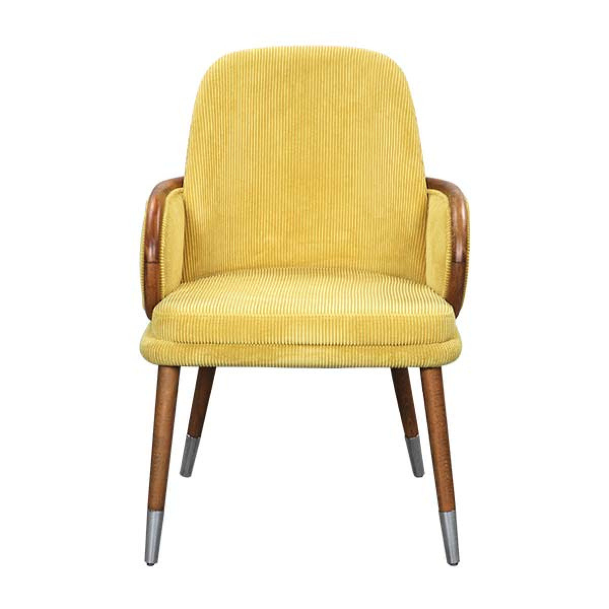 AKS 410 Drvena Fotelja Žuta unosi energičan i sofisticiran izgled u enterijer zahvaljujući žutoj baršunastoj presvlaci i elegantnim drvenim detaljima. Mekano sedište i ergonomski oblikovan naslon pružaju visok nivo udobnosti pri sedenju. Dizajn koji spaja moderne i retro linije čini je idealnim izborom za kafiće, restorane, hotele i boutique enterijere.