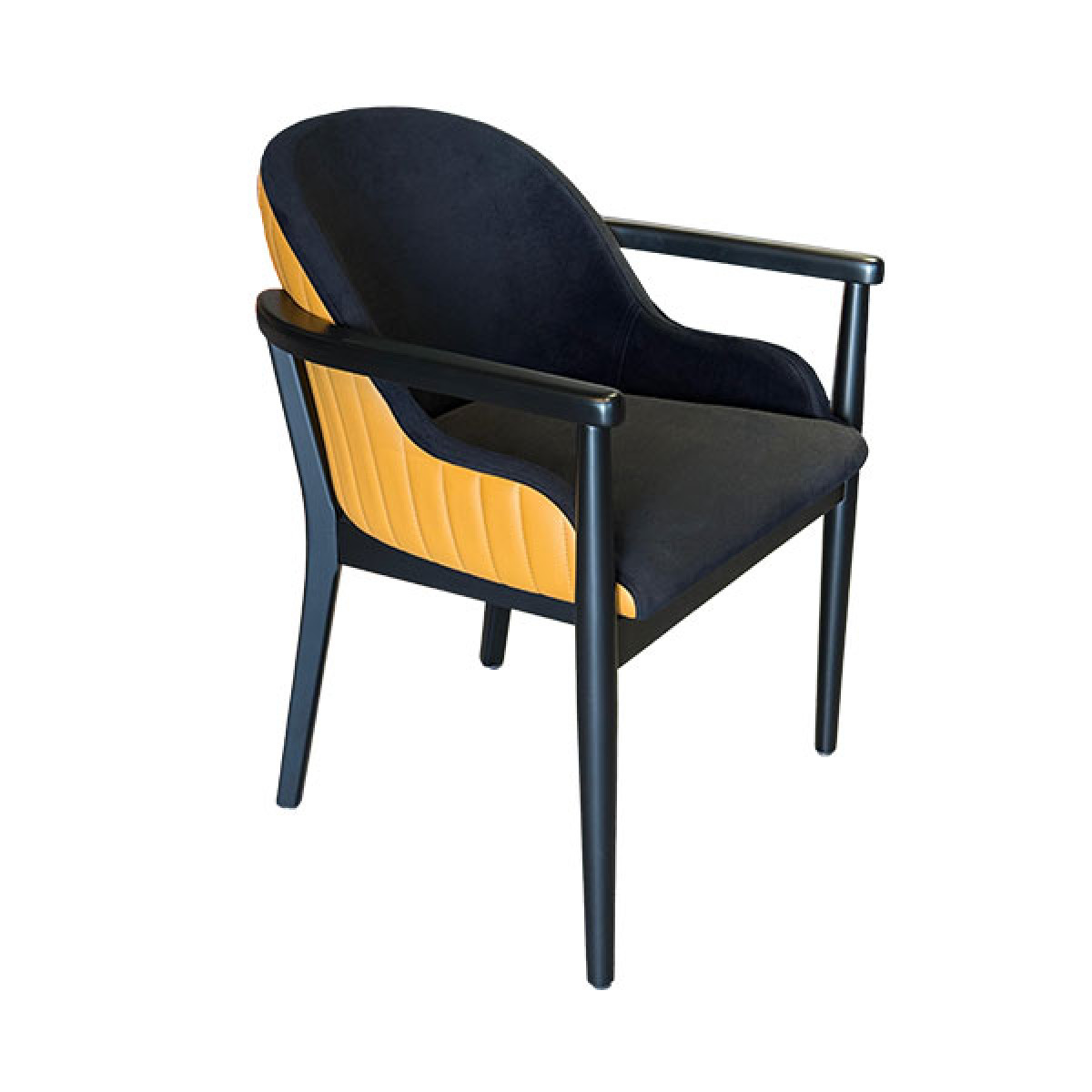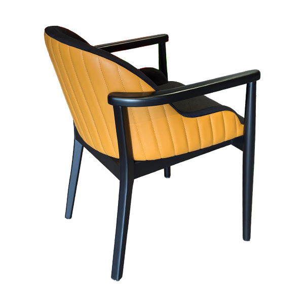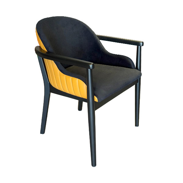 AKS 543 Drvena Fotelja Crna & Senf Žuta ističe se snažnim kontrastom boja i savremenim dizajnom. Čvrsta drvena konstrukcija u crnoj boji u kombinaciji sa senf žutim prošivenim naslonom pruža moderan i atraktivan izgled. Mekano sedište i ergonomski oblikovan naslon obezbeđuju visok nivo udobnosti tokom dužeg sedenja. Idealna je za restorane, kafiće, hotele i moderne enterijere.