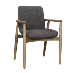 AKS 555 B Drvena Fotelja Antracit – Prirodno Drvo spaja savremeni komfor sa toplinom prirodnog dizajna. Antracit tapacirano sedište u elegantnom je kontrastu sa prirodnim drvenim rukonaslonima i konstrukcijom. Ergonomski naslon i široko sedište pružaju visok nivo udobnosti, što je čini idealnom za restorane, kafiće, hotele i stambene prostore.