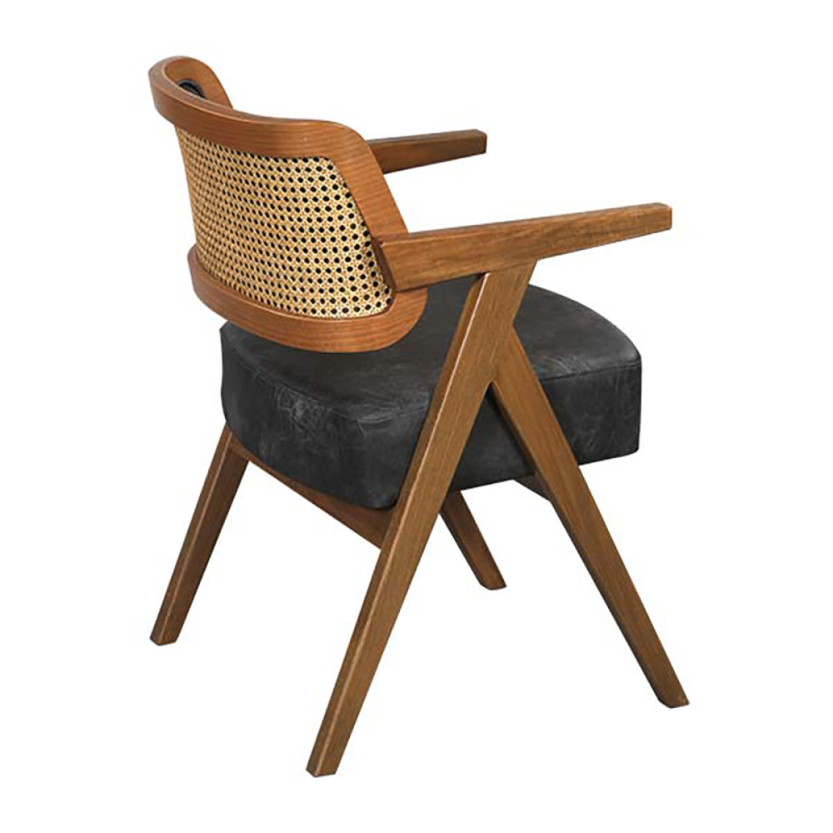 Pozadinski panel od bambusove mreže (ratan) dodaje estetsku notu i omogućava bolju prozračnost. Široko sedište i ergonomski osmišljeni rukonasloni pružaju visok nivo udobnosti tokom duže upotrebe.