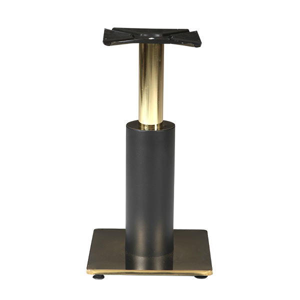 AY 1916 čelično postolje za sto odlikuje se profinjenim i savremenim dizajnom, sa mat crnim telom i elegantnim zlatnim detaljima. Cilindrična noga u kombinaciji sa kvadratnom bazom obezbeđuje visoku stabilnost i vizuelnu sofisticiranost. Idealno je za kafiće, restorane, hotele i moderne ugostiteljske enterijere.