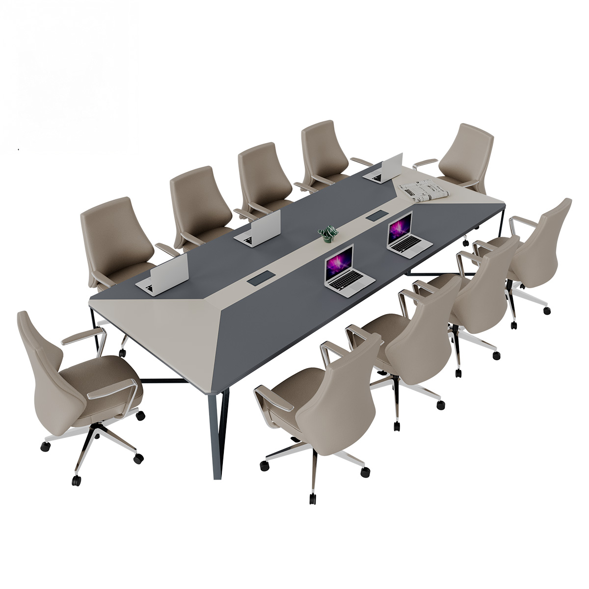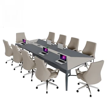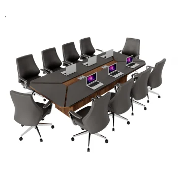 Sto za sastanke dizajniran je da pruži prostran i funkcionalan prostor za timske sastanke, prezentacije i zajednički rad. Njegova velika površina čini ga idealnim za srednje i veće sale za sastanke, omogućavajući udoban i efikasan rad.