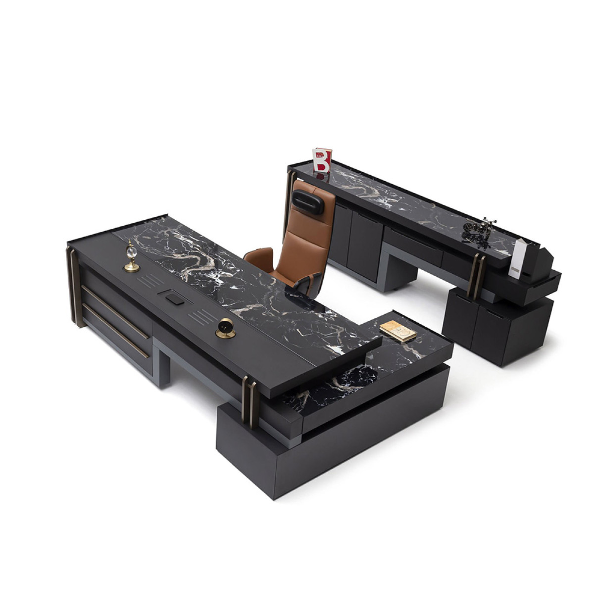 Bigboss, koji pruža poverenje svojom teškom strukturom, izdvaja se od drugih nameštaja neobičnim šarenim metalnim akcentima. Uprkos svojoj tankoj strukturi, noge koje drže zasićeni nameštaj uspravno takođe dobijaju podršku od uspešno dizajniranog pomoćnika sa strane stola. Udaljavajući se od standarda jedinstvenih delova, široka radna površina odvojena od kalupa čini eleganciju u detaljima dizajna još upečatljivijom.
