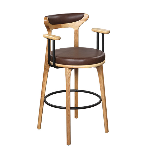 BR 1075 Drvena Barska Stolica Braon dizajnirana je za barske pultove i visoke površine, sa čvrstom drvenom konstrukcijom i stabilnom formom. Zaobljeni naslon i nasloni za ruke pružaju ergonomičnu udobnost, dok tapacirano sedište omogućava prijatno i dugotrajno sedenje. Metalni oslonac za noge doprinosi stabilnosti i funkcionalnosti. Bezvremenski dizajn omogućava lako uklapanje u restorane, kafiće, hotele i moderne enterijere.