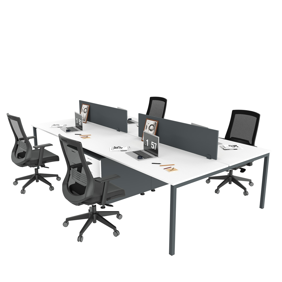 EAR Radna Stanica za 4 Osobe dizajnirana je za unapređenje saradnje i produktivnosti u savremenim kancelarijama. Njena prostrana konfiguracija za četiri korisnika omogućava efikasan i organizovan radni prostor, idealan za timove koji zahtevaju balans između zajedničkog rada i individualne koncentracije.