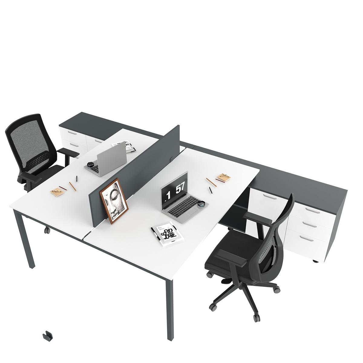 EAR Dupla Radna Stanica sa Dugim Bočnim Nastavkom predstavlja vrhunsko rešenje za radne prostore koji zahtevaju maksimalnu efikasnost i timski rad. Konfiguracija za dve osobe omogućava nesmetanu saradnju, dok produženi bočni nastavak značajno povećava radnu površinu za multitasking, opremu i bolju organizaciju.