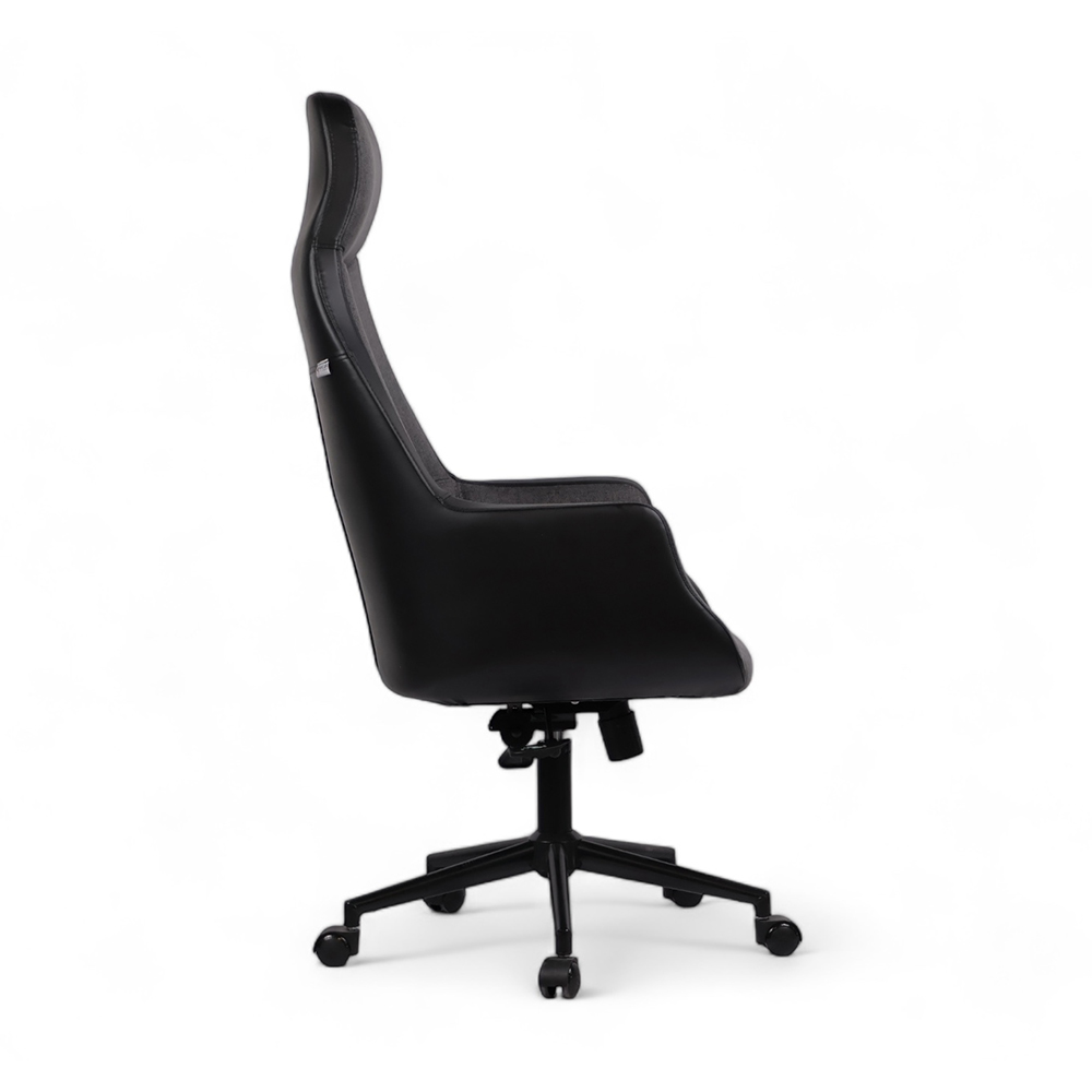 Baron Executive Chair brings together modern design and everyday comfort for professional workspaces. Its high-back form supports a more relaxed sitting posture, while the softly upholstered inner panels provide a comfortable seating experience throughout the day. The leather-look outer surface adds a premium appearance and is easy to clean.
