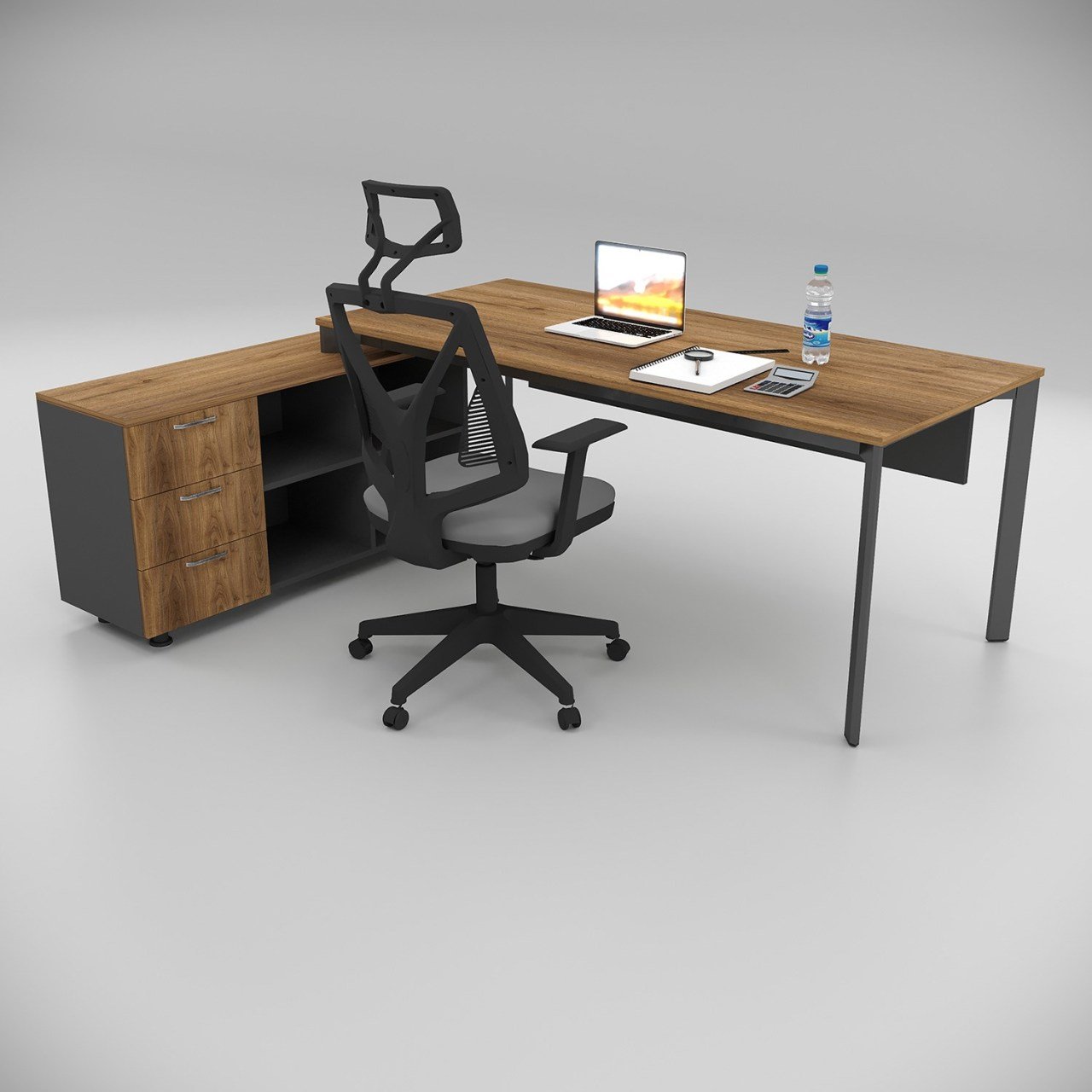 Corner Office Desk Walnut (with 120cm Bottom Shelf)