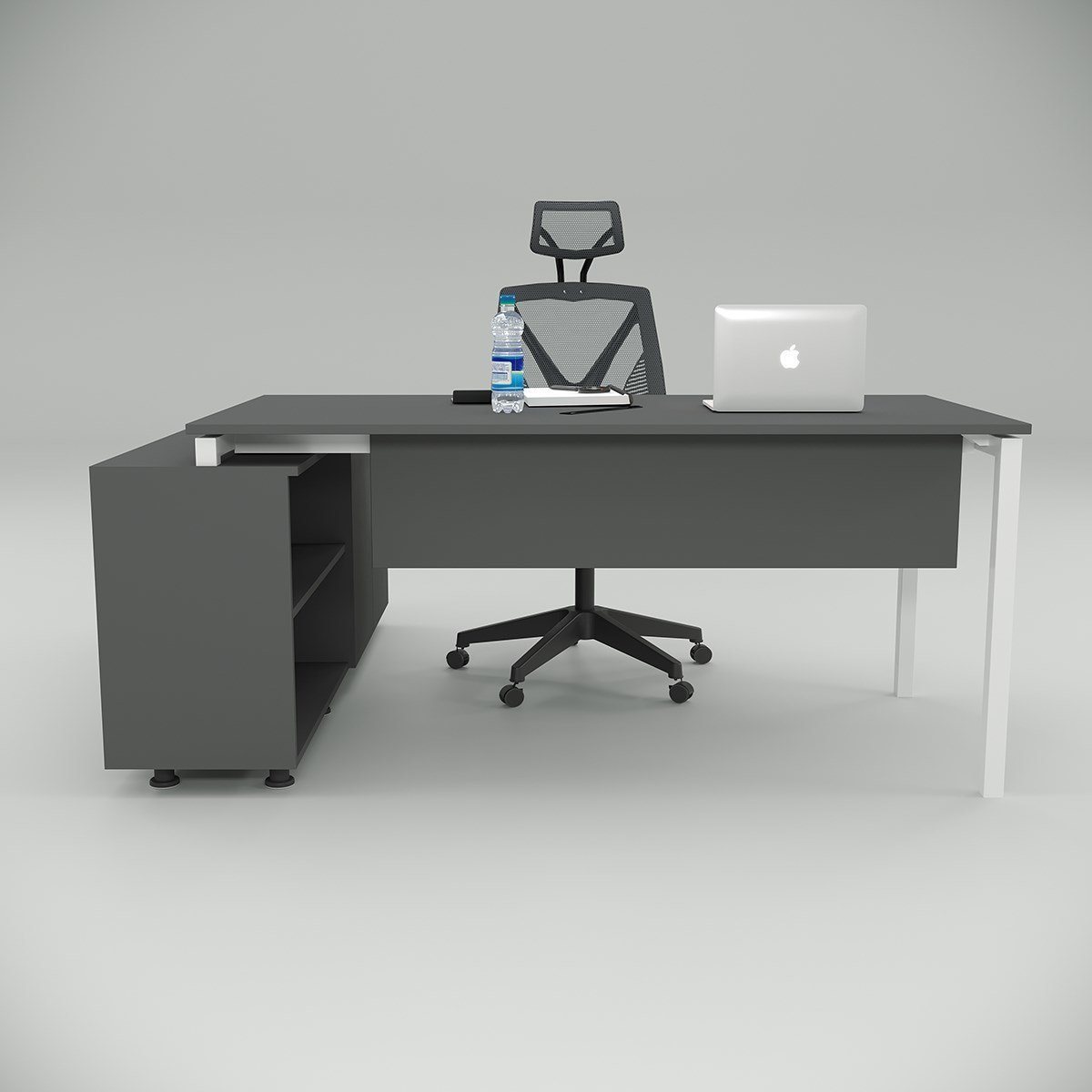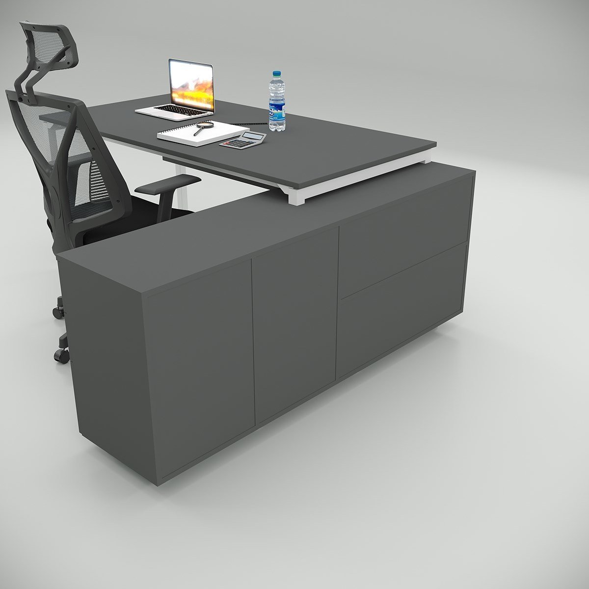 Ear Desk Anthracite (160cm with Bottom Shelf)
