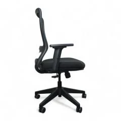 Black plastic frame / Adjustable arm / Plastic base / Multi-tilt mechanism / Lumbar support / Silicone wheels