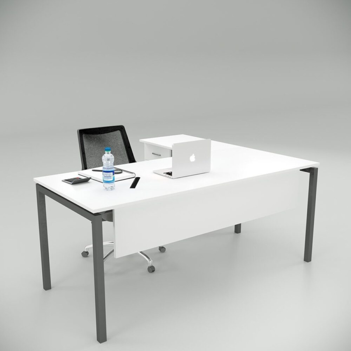 The top is displayed in white, the front curtain is white, and the metal leg is in 40×40 profile anthracite colours.