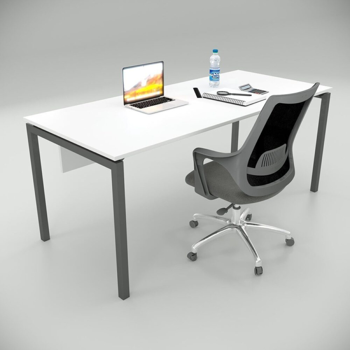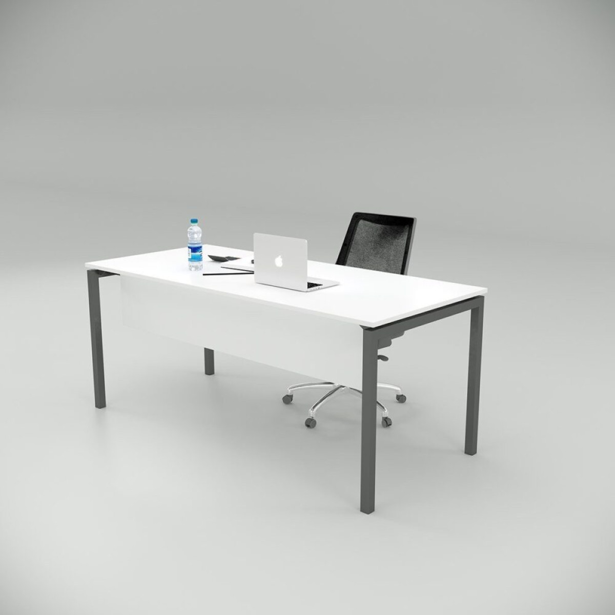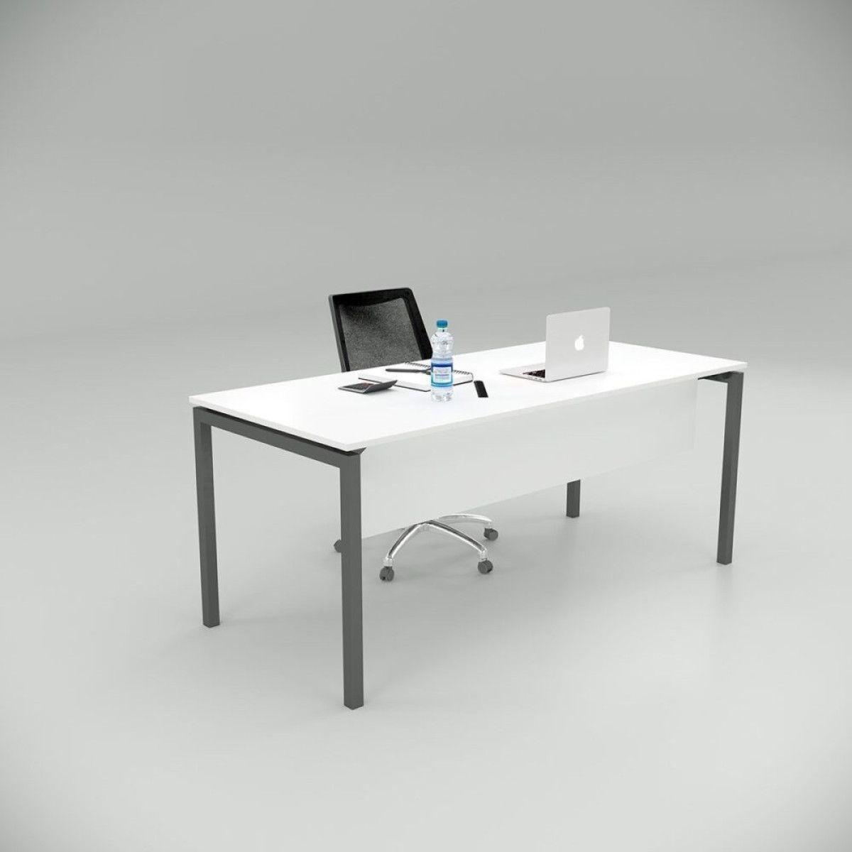 The top is displayed in white, the front curtain is white, and the metal leg is 40×40 profile in anthracite color.