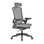 Black plastic frame, plastic base, adjustable armrest, lumbar support, seat depth adjusment as an option