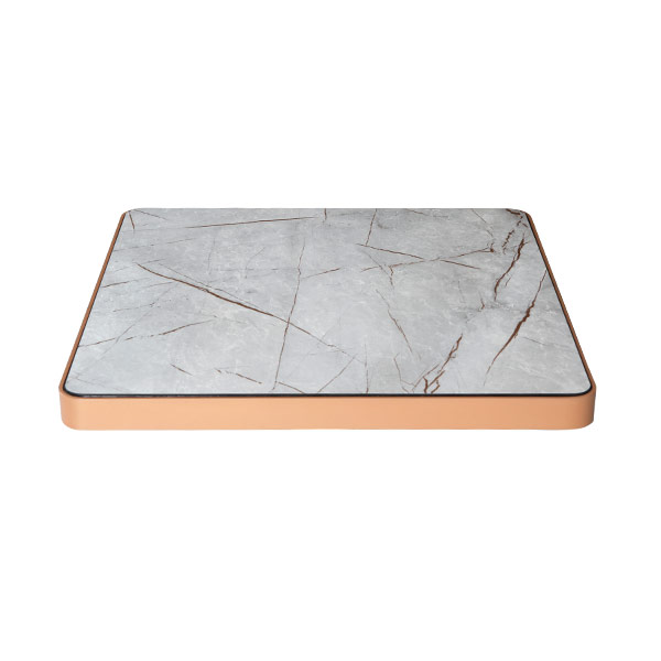 TAB 1825 compact table top features a modern and sophisticated design, combining a marble-effect compact laminate surface with a sleek steel frame. With its 40 mm thickness, it offers exceptional durability and stability for intensive commercial use. The steel edge detail adds a contemporary and premium character, making this table top an excellent choice for cafés, restaurants, hotels, and modern hospitality interiors.
