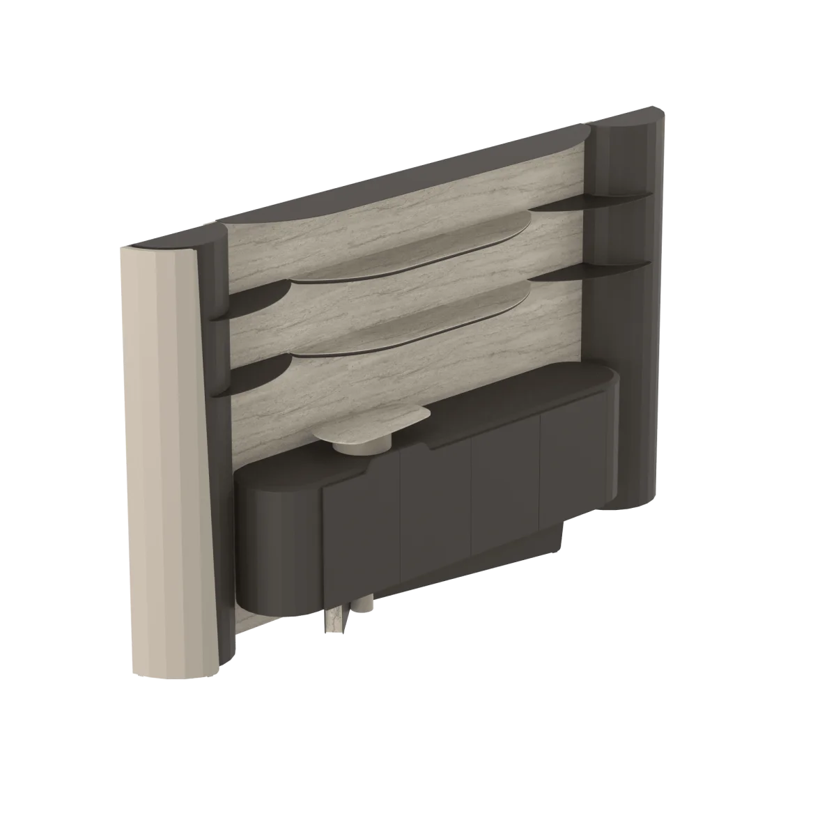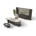 Monolith menadžerski set predstavlja snagu, ravnotežu i prestiž u savremenim kancelarijskim prostorima. Svojom skulpturalnom formom i monolitnim karakterom donosi snažan arhitektonski izraz, dok sklad svetlih i tamnih tonova stvara sofisticiranu i elegantnu atmosferu.