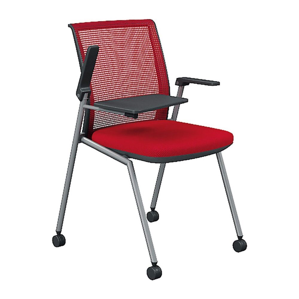 Има офарбане цевне ноге, склопиво седиште и руку, и има 4 точка.