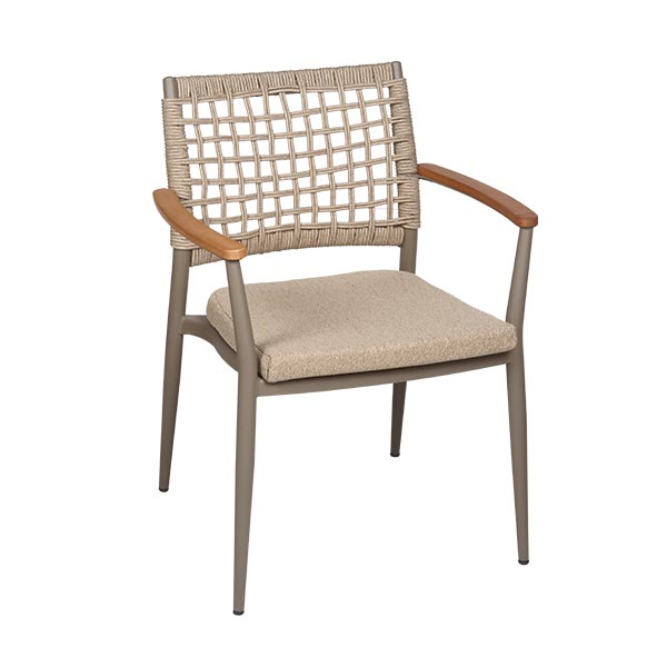 SM 2984 Aluminijumska Stolica kombinuje moderan aluminijumski okvir sa ručno pletenim naslonom od užeta, nudeći lagan, elegantan i funkcionalan dizajn. Ergonomski oblik i udobno sedište sa jastukom čine je pogodnom za unutrašnju i spoljašnju upotrebu. Idealan je izbor za kafiće, restorane, hotele i terase.