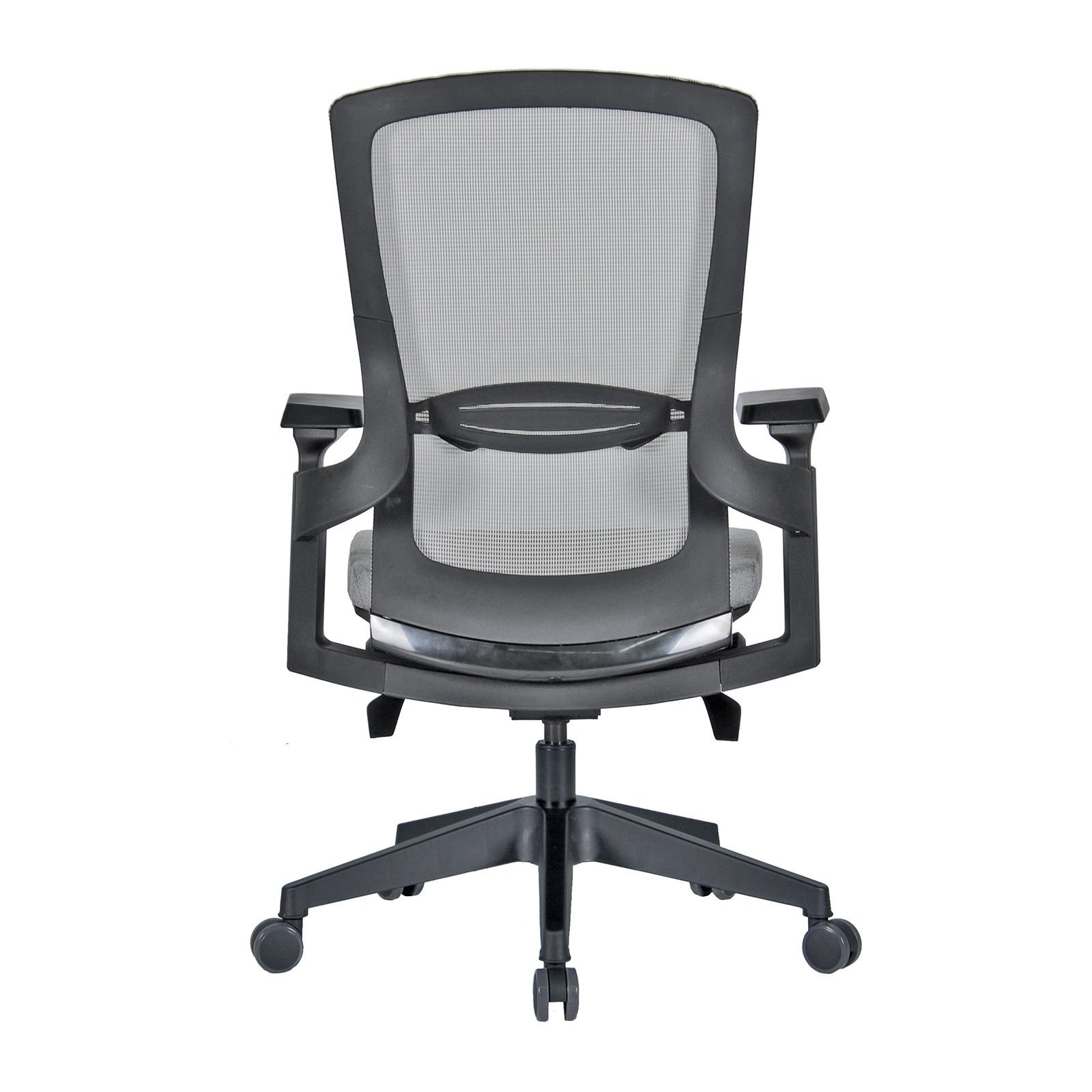 Crni plastični okvir, plastična osnova, podesivi naslon za ruke, lumbalna podrška, podešavanje dubine sedišta kao opcija.