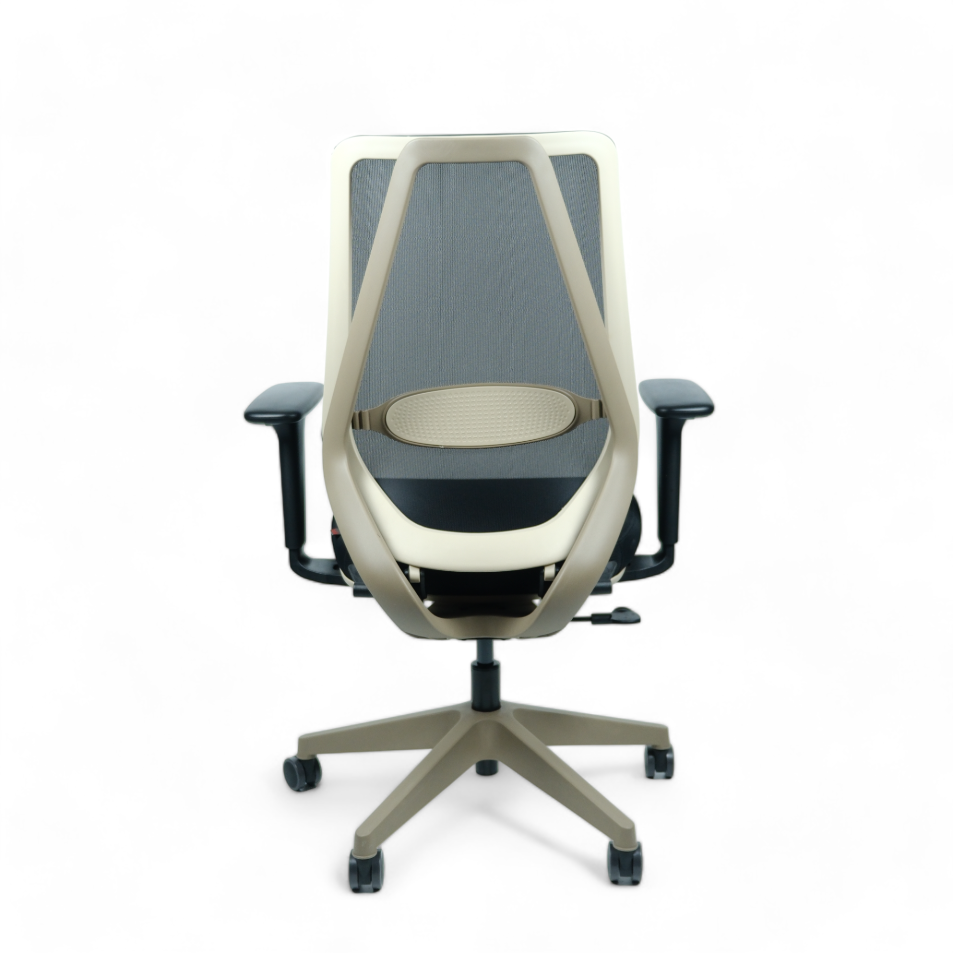Kapučino plastično telo, crni podesivi naslon za ruke, plastična noga