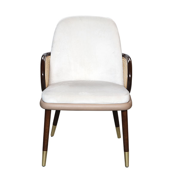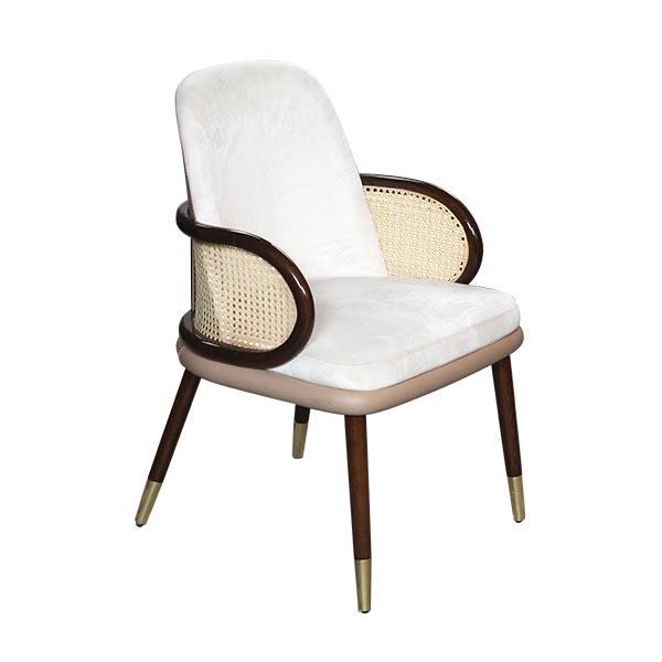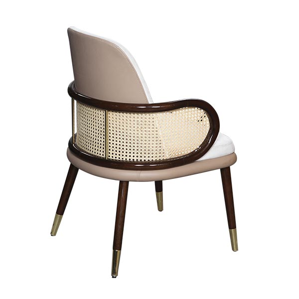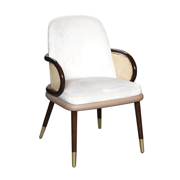 AKS 410 B Drvena Fotelja kombinuje masivnu drvenu konstrukciju sa bočnim panelima od trske i presvlakom u svetlim tonovima, pružajući elegantan i sofisticiran izgled. Ergonomski oblik naslona i mekano sedište obezbeđuju visok nivo udobnosti, čak i pri dužem korišćenju. Idealan je izbor za kafiće, restorane, hotele i moderne enterijere.