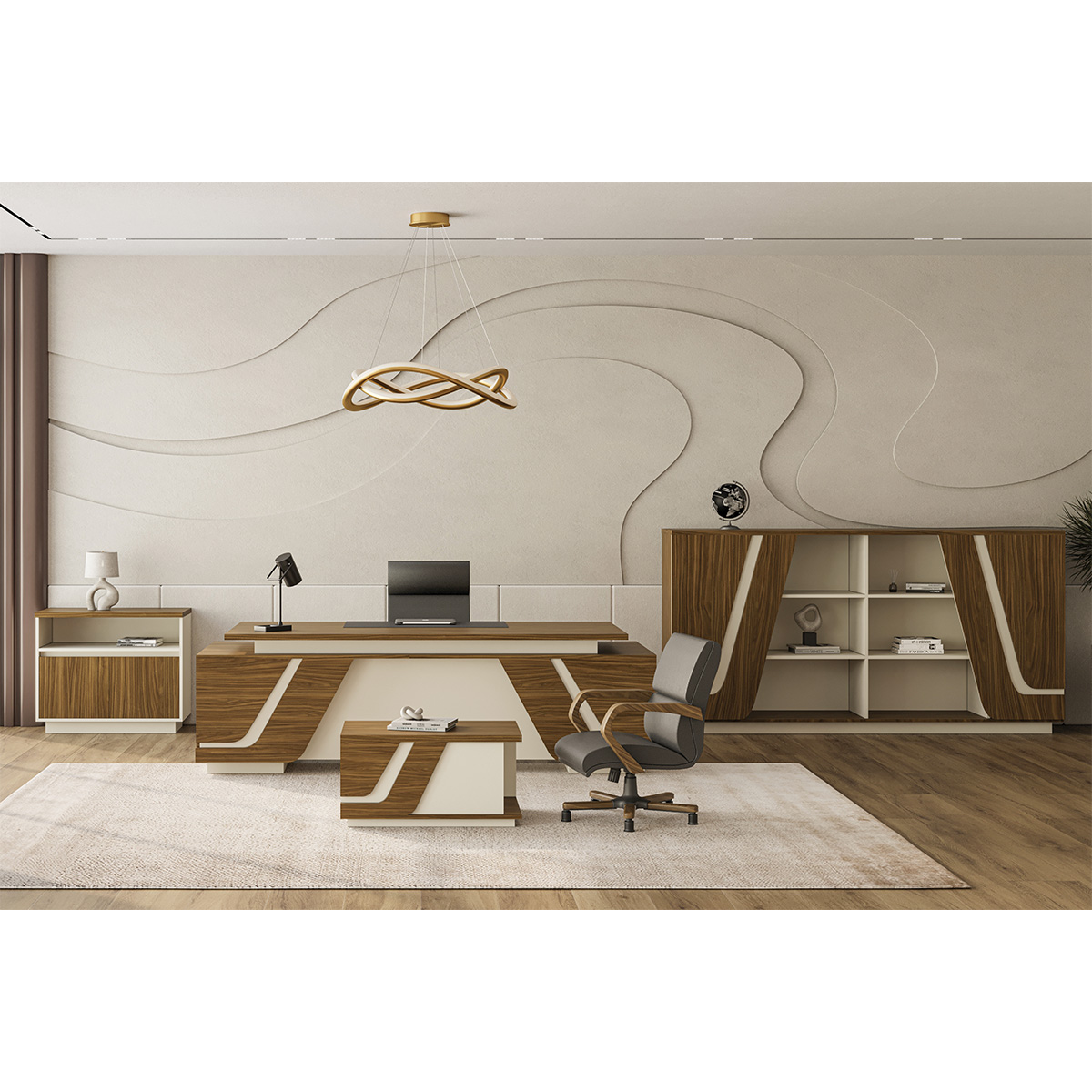 Izrađen od pažljivo odabranih vrhunskih materijala, ovaj sto obezbeđuje dugotrajnost, stabilnost i pouzdane performanse. Njegova ergonomska struktura omogućava udoban svakodnevni rad, dok se savremeni dizajn savršeno uklapa u luksuzne kancelarijske prostore.