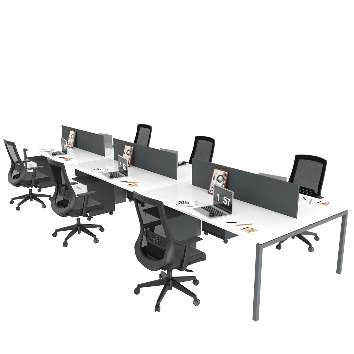 EAR Radna Stanica za 6 Osoba dizajnirana je za maksimalnu saradnju i produktivnost u većim timovima. Konfiguracija za šest korisnika pruža prostran i organizovan radni prostor, čineći je idealnim rešenjem za dinamične kancelarije koje zahtevaju efikasnu komunikaciju i radni tok.