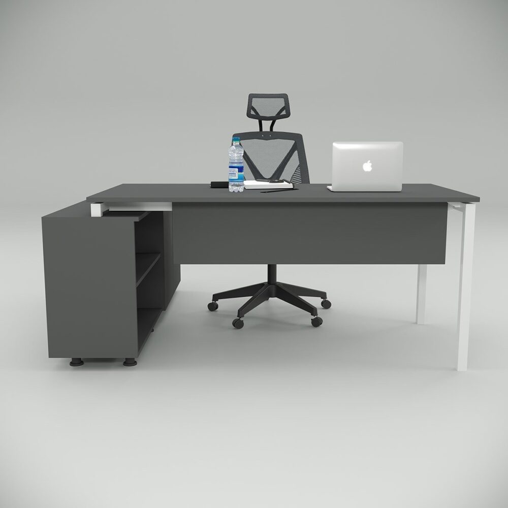 Gornji deo je u antracit boji, prednja zavesa je antracit, a metalna noga je profila 40×40 bele boje.