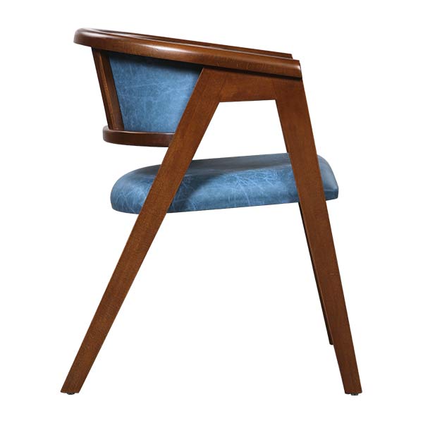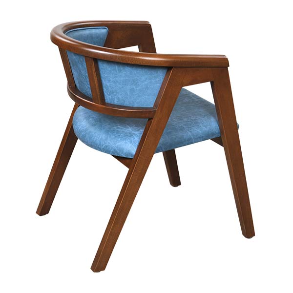 AKS 475 B Wooden Armchair Blue combines elegant curves with a comfort-focused design, blending modern and classic aesthetics seamlessly. Its solid wooden frame is perfectly complemented by blue upholstery, creating a refined and balanced look. The ergonomic backrest and cushioned seat provide excellent comfort for extended seating. An ideal choice for restaurants, cafés, hotels, and boutique interiors.